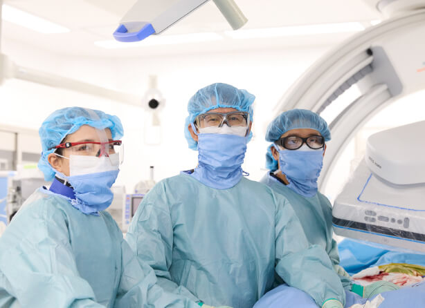 治療は手術およびカテーテル治療を火曜日、木曜日、金曜日に行っています。診断は血管造影検査を積極的に行っており、疾患に対する理解を深めることができます。週1回の症例カンファレンス(木曜日)のほか、研究カンファレンスも随時行なっており、専門医や学位の取得に必要な研究の指導を受けることができます。考える血管外科医(Surgeon-scientist)の育成を重要視しています。